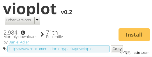 例如,y 已经在 CRAN 中发布,并且仍然在线并正在更新的最早的软件包是来自 Daniel Adler 的 vioplot 软件包。